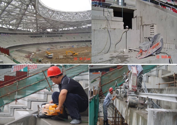 國家體育場(鳥巢):國家體育場工程為特級體育建筑,主體鋼結構形成整體的巨型空間馬鞍形鋼桁架編織式“鳥巢”結構,鋼結構總用鋼量為4.2萬噸,混凝土看臺分為上、中、下三層,看臺混凝土結構為地下1層,地上7層的鋼筋混凝土框架-剪力墻結構體系。鋼結構與混凝土看臺上部完全脫開,互不相連,形式上呈相互圍合,基礎則坐在一個相連的基礎底板上。國家體育場可以說是鋼結構建筑的代表建筑。
